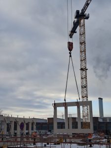 In Haus D werden trotz winterlicher Witterung die ersten Schritte für die Herstellung des Erdgeschosses fortgeführt. Die Arbeiten knüpfen an die vorbereitenden Maßnahmen der vergangenen Wochen an und markieren den Übergang in den nächsten Bauabschnitt. Damit schreitet der Hochbau von Haus D planmäßig voran.